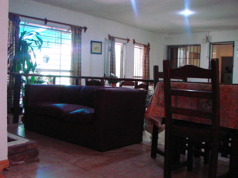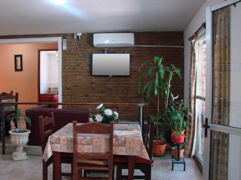 El residencial cuenta con un amplio living-comedor y un gran patio trasero decorado de plantas, donde los huéspedes disfrutan del verde y la tranquilidad.